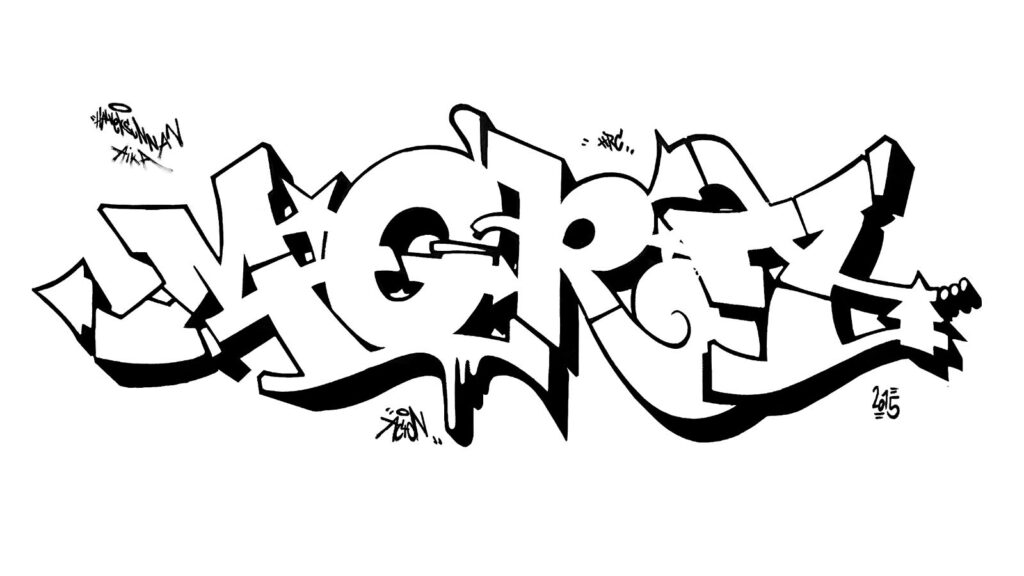 M.O.R.A. x 2 | pencil & fineliner on paper | spraypaint on plywood | 2015