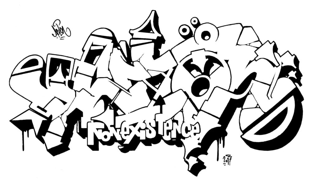 NONEXISTENCE x 2 | pencil & fineliner on paper | spraypaint on a wall | 2017