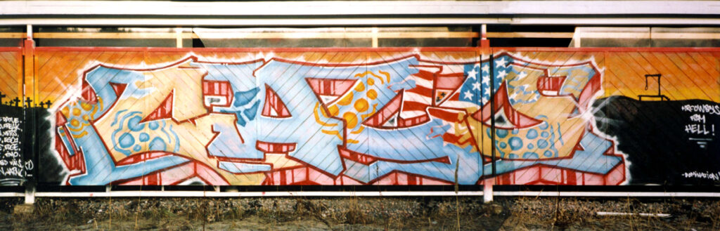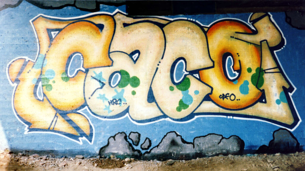 The 2nd Caco was also the largest graffiti piece I painted solo during that decade. In total I think it’s more than 20 meters wide (2/3 of the background is missing from the picture). Now that I think of it, there are only a few pieces I’ve done that are bigger than this — all of them painted after 2015 at various events.