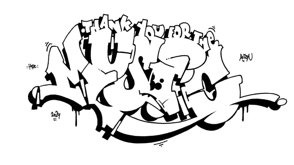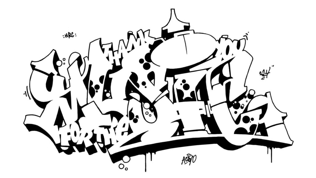Well, what else could I say? Or in my case, write? The very name of this art project is borrowed from ABBA’s absolutely beautiful song Thank You for the Music, so including at least one sketch with the same text was really a no-brainer. And at least for me, the lyrics of this particular song resonate deeply — music has been a crucial part of my graffiti career since day one.