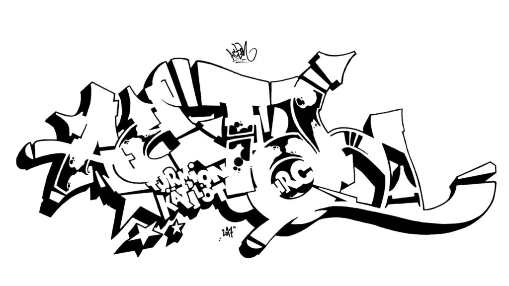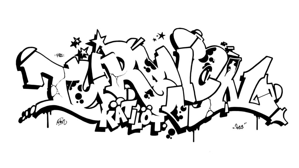 The 2nd picture, Acton with a miniature “Turmion Kätilöt” text, was also published in “Perintö” graffiti book (2018). And there’s a lot more related sketches lined up, waiting to be published on this site.